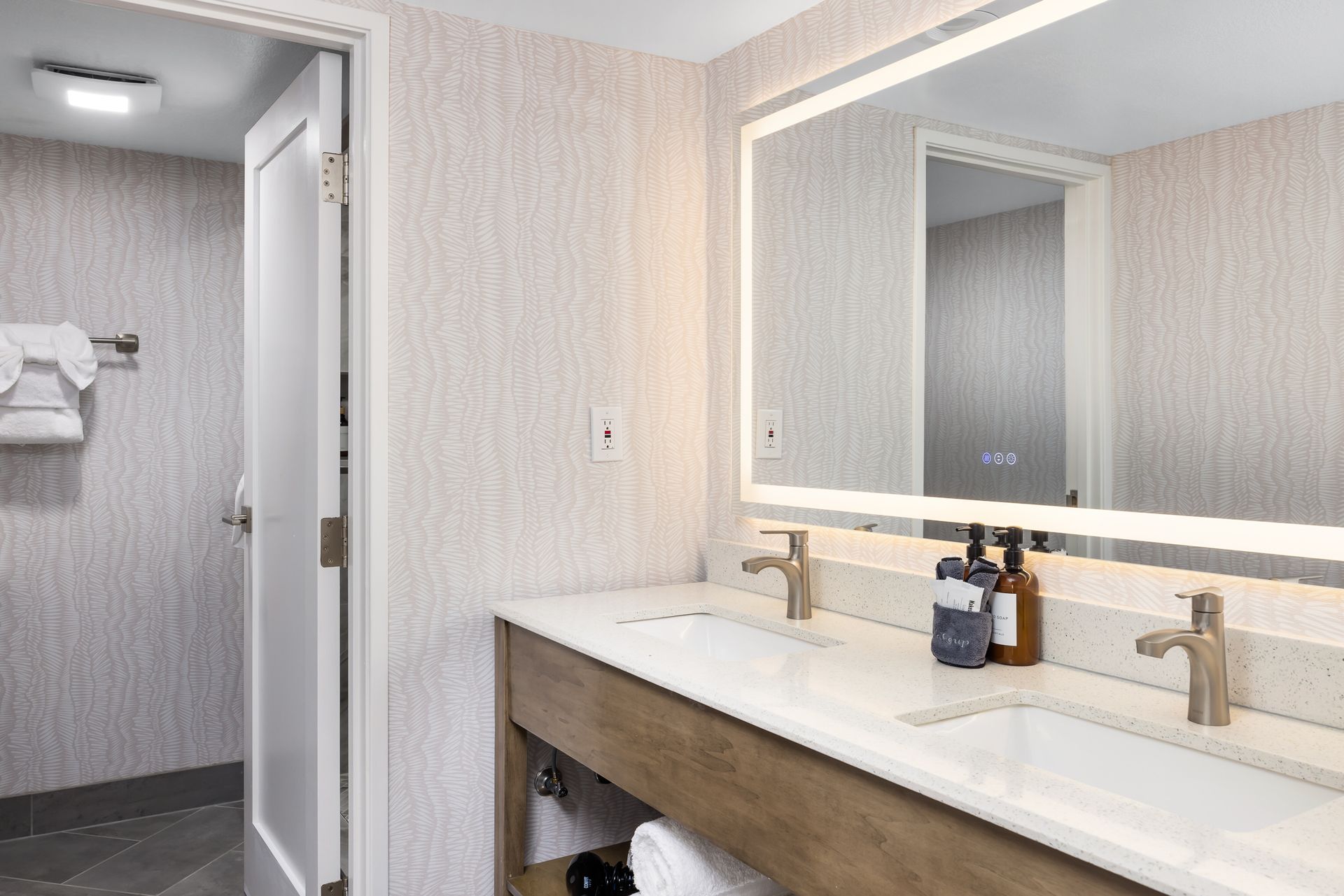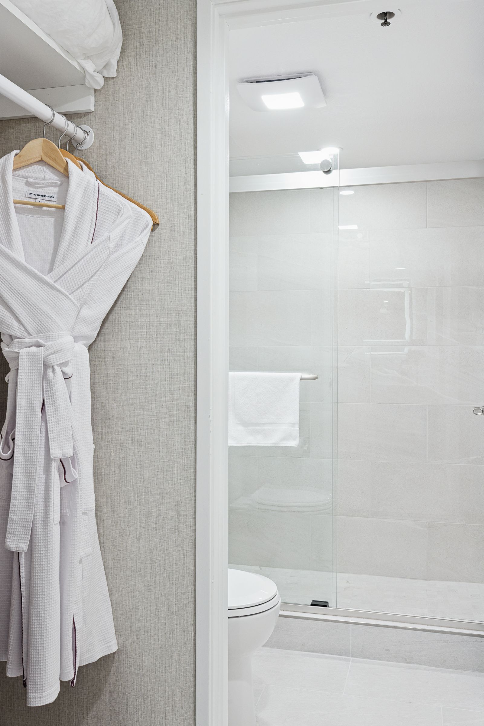 Newly renovated with modern, sleek furnishings, this spacious non-smoking room features 2 queen beds and partial views of the scenic Embarcadero Bay. Enjoy upgraded comforts including a refreshed bathroom with new tile, a walk-in shower, LED vanity mirror, and brand-new carpet (hardwood flooring in our pet-friendly rooms). Room also includes: in-room coffee, free Wi-Fi, Cable TV on a flat-screen, hair dryer, robes, yoga mat and an iron and ironing board for your convenience. The Embarcadero Inn features free covered parking and secured elevator access to all rooms.